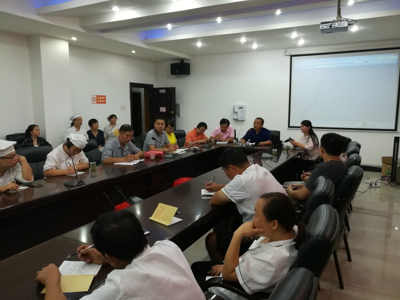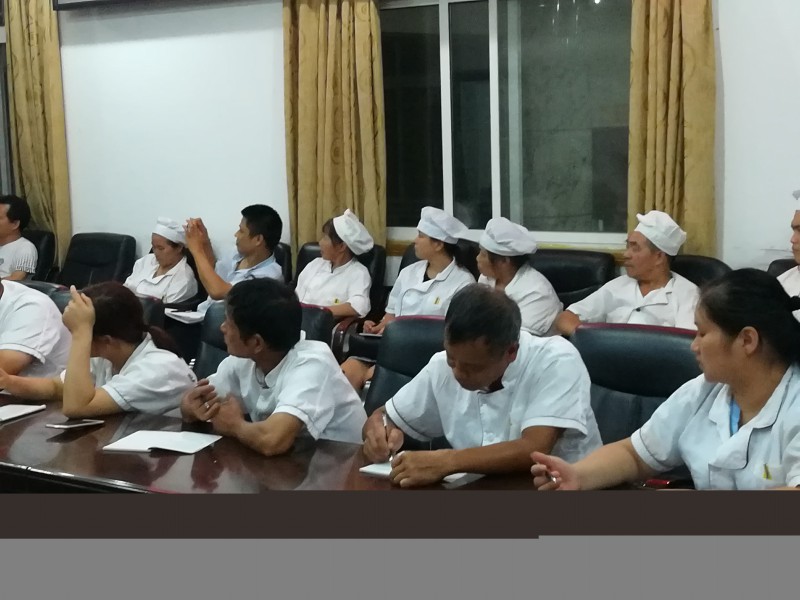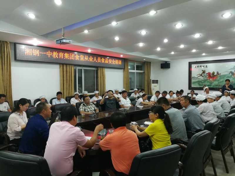 2017年9月11日晚7時,湘鋼一中教育集團在南樓會議室召開食品從業(yè)人員安全培訓會議。會議由主管后勤工作的副校長李石明主持,參加會議的有湘鋼一中校區(qū)的總務(wù)科科長姜站高,十二中校區(qū)的后勤部部長劉滿林,湘鋼一中校區(qū)總務(wù)科副科長文勁,食堂管理人員姜鐵安、黃玉華以及兩個校區(qū)的食品行業(yè)從業(yè)人員。