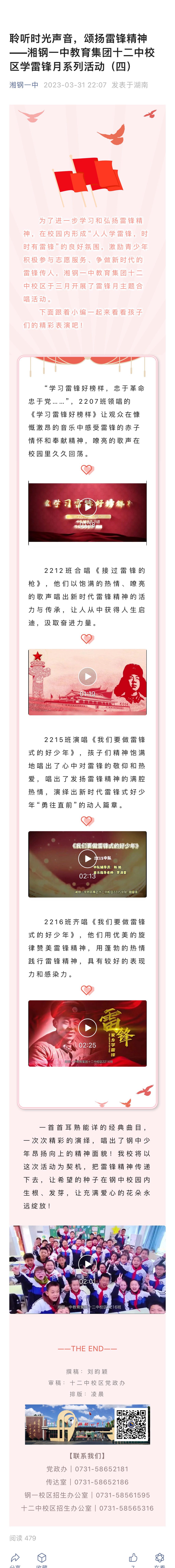 聆聽(tīng)時(shí)光聲音,頌揚(yáng)雷鋒精神 ——湘鋼一中教育集團(tuán)十二中校區(qū)學(xué)雷鋒月系列活動(dòng)(四)
