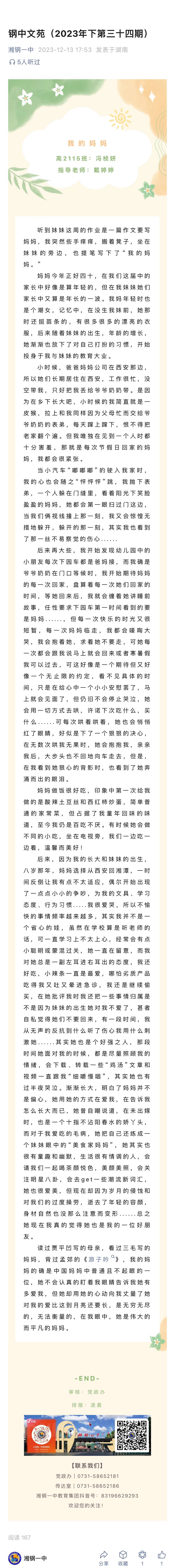 來源:微信公眾號 | 作者:湘鋼一中教育集團 | 發(fā)布時間: 2023-12-13 | 3251 次瀏覽 | 分享到: