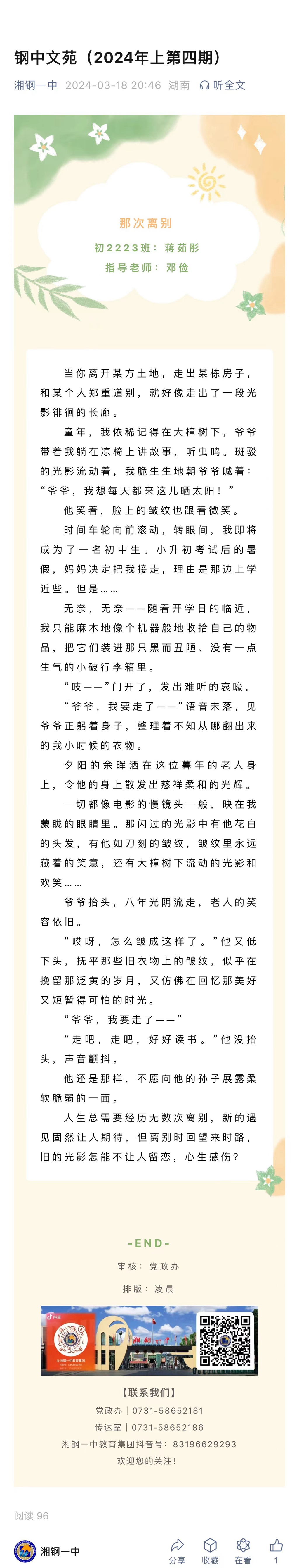 來(lái)源:微信公眾號(hào) | 作者:湘鋼一中教育集團(tuán) | 發(fā)布時(shí)間: 2024-03-18 | 2905 次瀏覽 | 分享到: