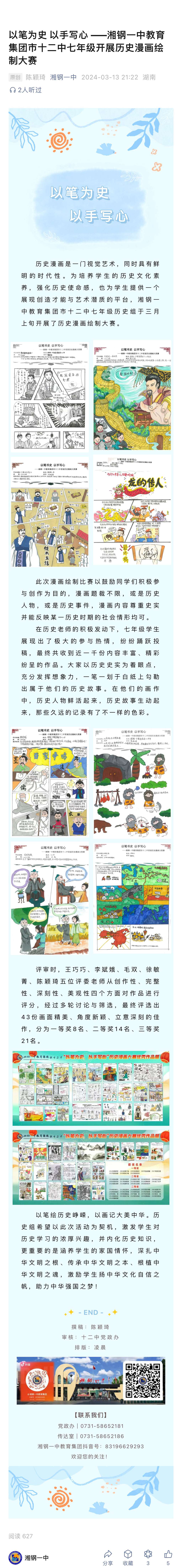 以筆為史 以手寫心 ——湘鋼一中教育集團市十二中七年級開展歷史漫畫繪制大賽