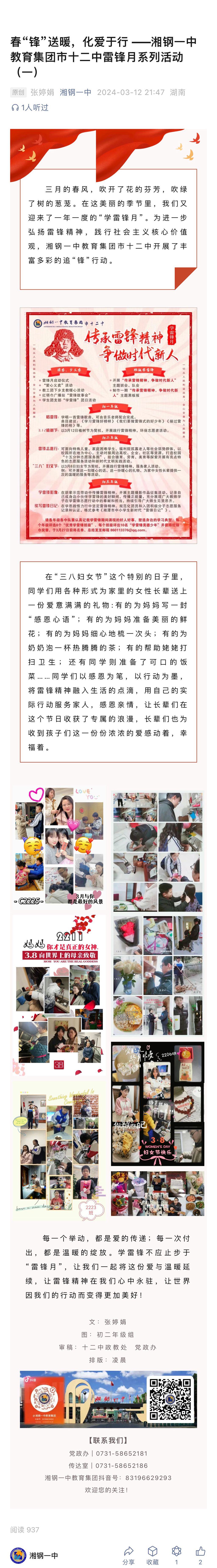 春“鋒”送暖,化愛于行 ——湘鋼一中教育集團(tuán)市十二中雷鋒月系列活動(一)