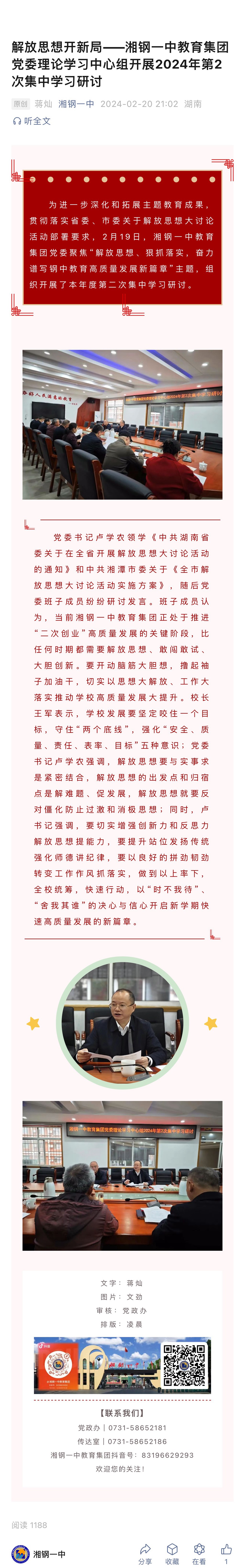解放思想開(kāi)新局——湘鋼一中教育集團(tuán)黨委理論學(xué)習(xí)中心組開(kāi)展2024年第2次集中學(xué)習(xí)研討