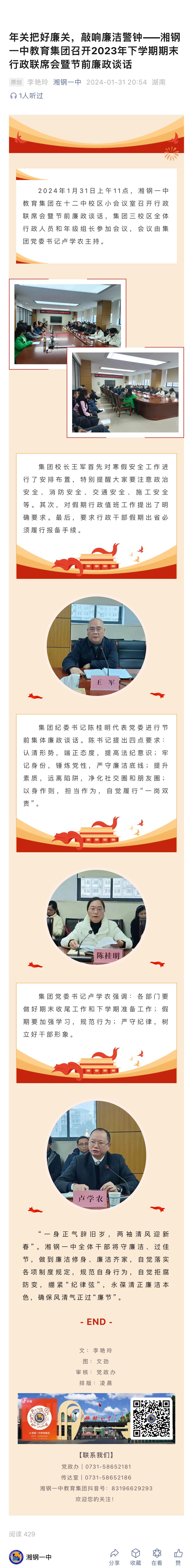 年關(guān)把好廉關(guān),敲響廉潔警鐘——湘鋼一中教育集團(tuán)召開2023年下學(xué)期期末行政聯(lián)席會暨節(jié)前廉政談話