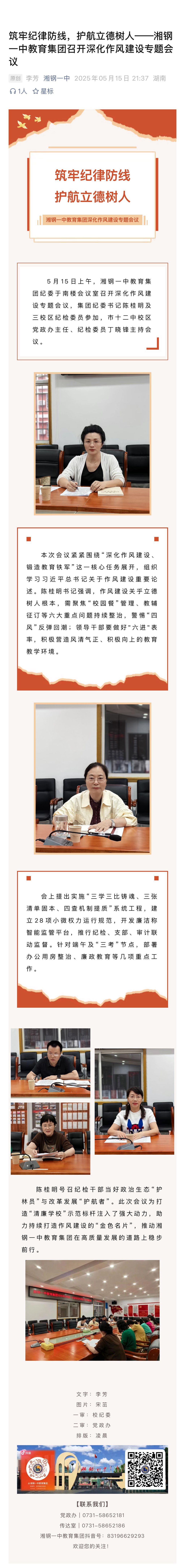 筑牢紀(jì)律防線(xiàn),護(hù)航立德樹(shù)人——湘鋼一中教育集團(tuán)召開(kāi)深化作風(fēng)建設(shè)專(zhuān)題會(huì)議
