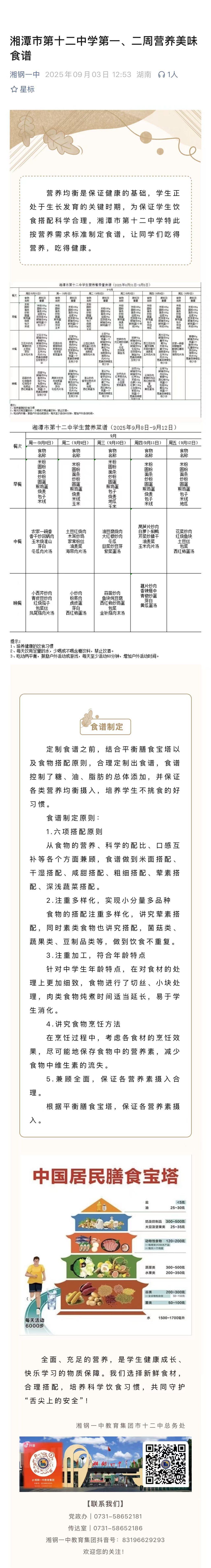 湘潭市第十二中學(xué)第一、二周營(yíng)養(yǎng)美味食譜
